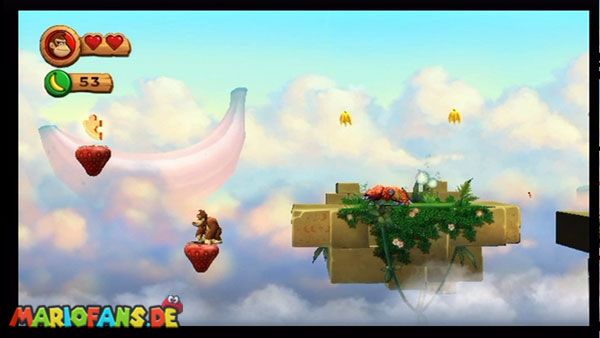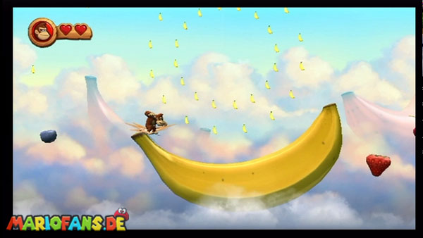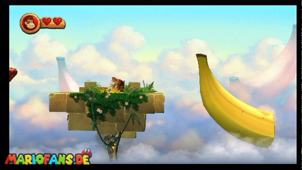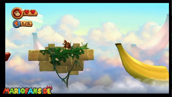 Kurz darauf siehst du einen Bananenkreis in der Luft. Sammle alle mithilfe der Blume ein, damit ein Puzzleteil erscheint.