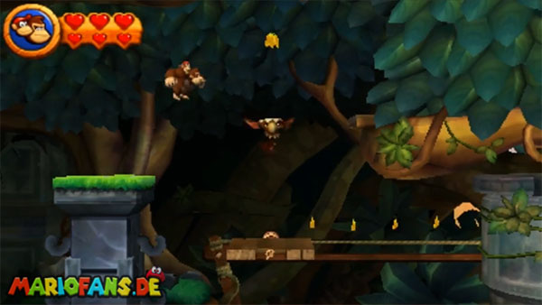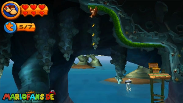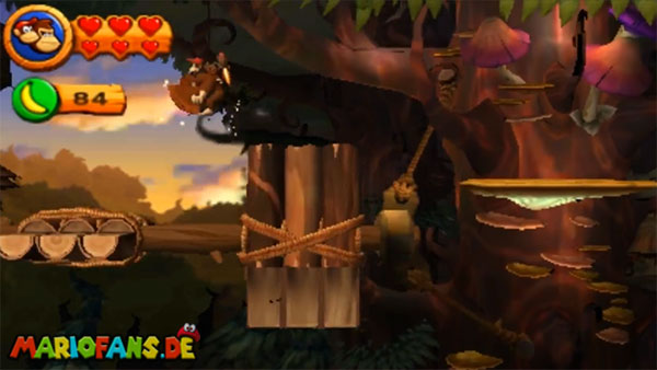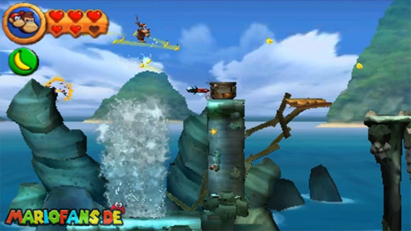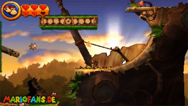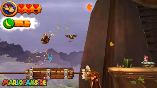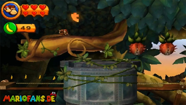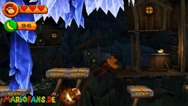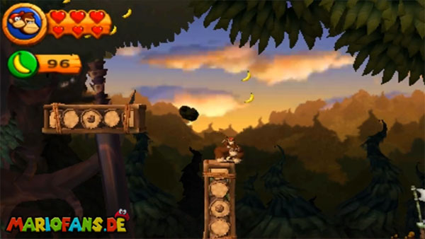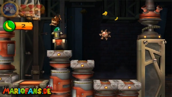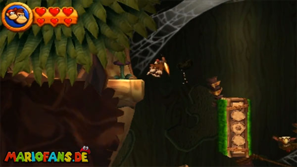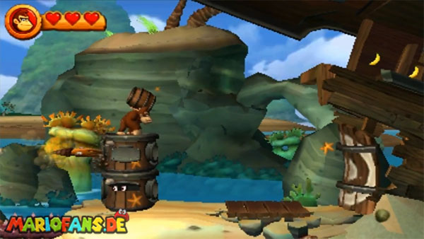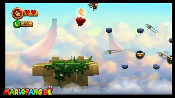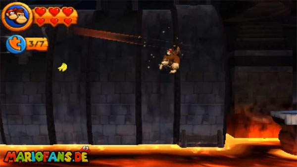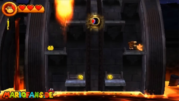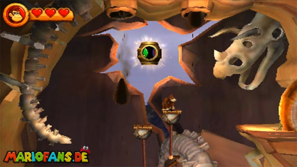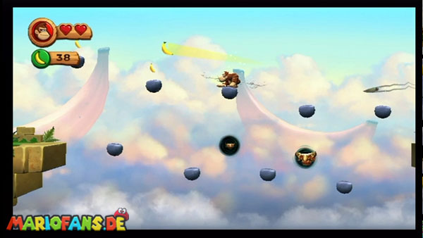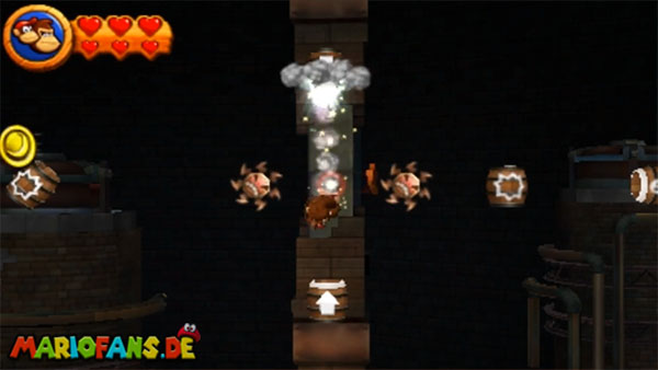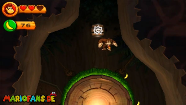 Bei den Bananen-Plattformen am Ende gibt es ein Kanonenfass, das die Kongs zum letzten Puzzleteil schießt.