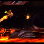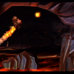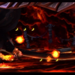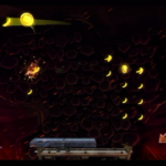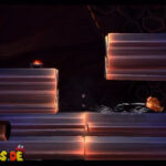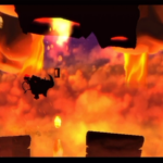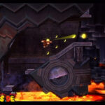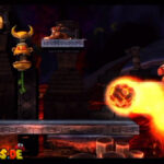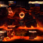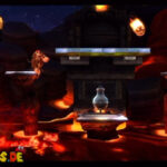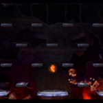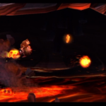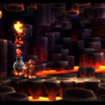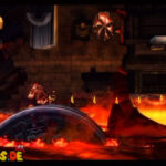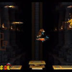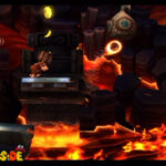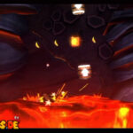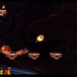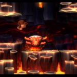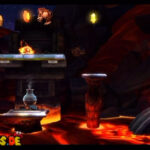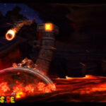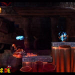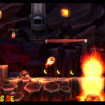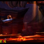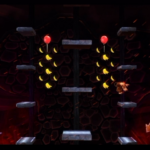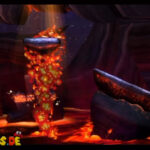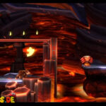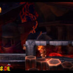 Auf die Weise werdet ihr schließlich auf einem großen Felsvorsprung landen, der ganz langsam nach rechts wegkippt. Bleibt einfach darauf stehen und springt im richtigen Moment zu dem Lichtschein aus der Decke, sobald sich unten in der Lava größere Blasen bilden. Eventuell kann es etwas schwierig sein, hier das richtige Timing zu erwischen, doch wenn ihr es richtig macht, werdet ihr direkt auf einer nach oben rasenden Plattform landen und in einen Bonusraum katapultiert werden.