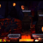 Gleich zu Beginn werdet ihr einen großen Lavasee überqueren, indem ihr von einer auftauchenden Felsplattform zur nächsten springt. Während die weiterführende Plattform immer rechts von euch auftaucht, wird an einer Stelle eine kleiner Vorsprung samt K links von euch auftauchen. Springt schnell zurück, um es euch zu schnappen, und setzt euren Weg dann nach rechts fort.