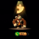 Folgt dem Weg, bis ihr Rambis Kiste auf der Plattform über euch erkennen könnt. Hebt hier per Schlag auf die darunterliegende Bodenplatte den Vorsprung links von euch an, sodass ihr Rambi aus seiner Holzkiste befreien könnt, und begebt euch mit ihm dann den ganzen Weg bis zum Levelbeginn zurück. Hier solltet ihr oben links ein zerstörbares Gewicht entdecken können, das euch schließlich einen geheimen Bereich mit dem ersten Puzzle-Teil offenlegt.