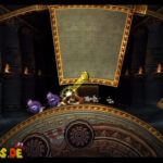 Für das vierte Puzzleteil müsst ihr euch auf dem riesigen Steinrad stehend alle entgegenkommenden Münzen schnappen während ihr den nervigen Gegnern ausweicht.