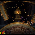 Kurz darauf hämmert ihr einen großen goldenen Knopf in den Boden und lasst damit einen riesigen Turm zu euch herunterfahren. Hüpft schnell hinein und schnappt euch auf eurem Weg nach oben jedes einzelne Item aus dem Gemäuer, um beim Verlassen bereits vom dritten Puzzle-Teil erwartet zu werden.
