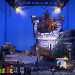 Mit dem Eimer voll Wasser kehrt ihr über den Fernseher in den Backstage-Bereich zurück und steigt in den Fernseher nebenan (gelbe Leuchte), der in das Schloss-Set (Saal 2) führt.