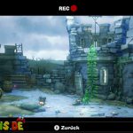 Als Fluigi könnt ihr in die Flasche links neben dem Pappkarton schlüpfen, um das grüne Juwel zu ergattern. Aktiviert dann die Kamera und verbrennt sowohl die Spinne als auch die Spinnweben mit der Fackel, um endlich das Megafon in die Finger zu bekommen. Bringt das Megafon zu Morty, der euch voller Freude in das letzte Set einlädt.