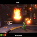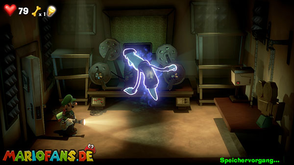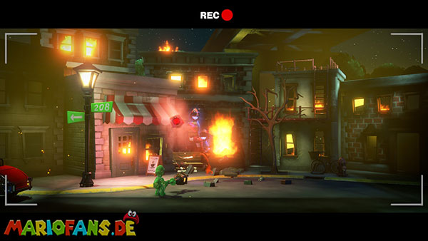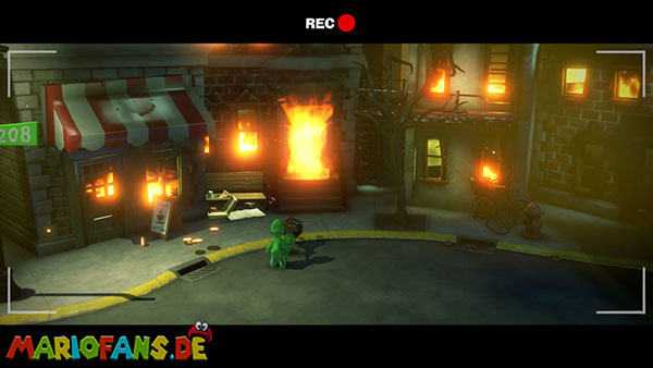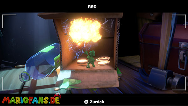 Legt die Fackel im Set ab und aktiviert die Kamera mit Luigi. Besiegt als Fluigi die Feuerwehrgeister und zündet die Fackel beim Feuer an.
