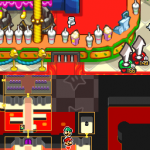 Gehe zum Röhrenbahnhof und suche die Röhre, welche in Bowsers Festung führt. Benutze das schwarze Rohr. In Bowsers Festung gehst du dann nach unten und gräbst dich anschließend in den Boden um durch das Gitter zu kommen und die blaue Röhre zu benutzen. Sauge die Luft ein und springe nach oben. Chippy wird schnell erkennen das hier was nicht stimmt, um aber die Tür zu öffnen brauchst du ein paar Codes die im östlichen Teil von Bowsers Festung sind. Da Bilder mehr sagen als tausend Worte solltest du dir oben die Bildergalerie anschauen um alle vier Tafeln zu finden. Wenn du alle hast musst du die Steine so schlagen. Zuerst zweimal das Viereck, danach einmal den Kreis, dann dreimal das Dreieck und zum Schluss die Tür. Diese wird sich öffnen, danach musst du in dem Raum den Schalter betätigen, damit die Shroobs schmelzen und dann Kampf beginnen kann.