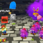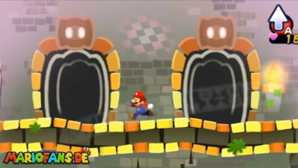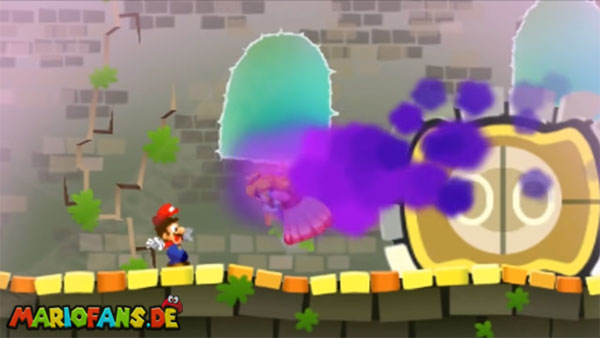 - Schwebt die Wolke direkt vor euch, dann wechselt das Spiel in eine andere Perspektive, bei der ihr von vorne nach hinten in den Raum rennt. Diesmal laufen euch blinkende Marios entgegen, die ihr einfach überspringen müsst. Die Wolke hingegen versucht eure Sicht mit ihrem Nebel zu verschleiern. Versucht diesem entsprechend aus dem Weg zu gehen.