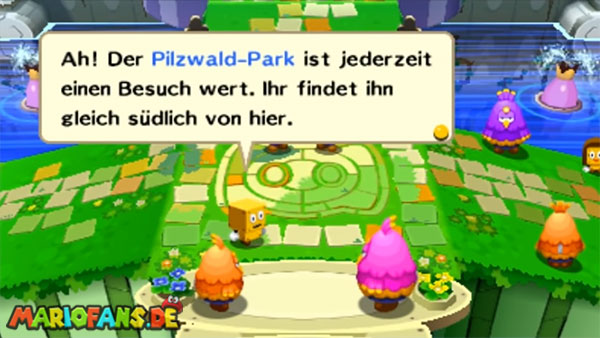 Habt ihr den Kampf geschafft, dann müsst ihr zu eurer Rechten einen großen Kristallstein zerdeppern. Zum Vorschein kommt Prinz Traumbert, der euch zurück in die Wachwelt bringt. Marschiert nach Süden sowie außen herum eine der beiden Treppen hinauf, um wieder zur Vorhalle des Schlosses zu gelangen. Dein nächstes Ziel wird der Pilzwald-Park im Süden sein.