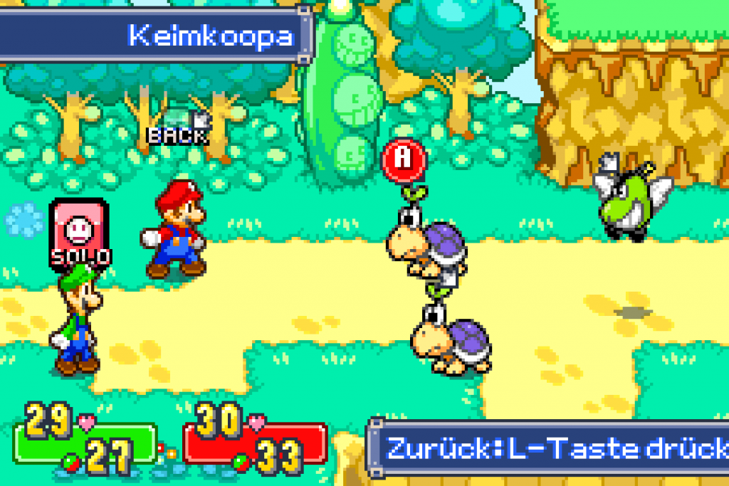 Nun folgt der Kampf gegen Lugmilla. Dieser ist gut auf Level 15 zu besiegen. Anfangs verdoppelt er sich, dann solltest du durch Sprünge versuchen herauszufinden, welche der echte ist. Ist dieser gefunden nutzt du deine Brüder-Attacken um ordentlich Schaden anzurichten. Achte darauf, dass du nicht in die Löcher von Lugmilla fällst, da du so 1t als Gewicht ans Bein gebunden bekommst und sehr unbeweglich wirst. Auch solltest du es vermeiden, von den Blitzen getroffen zu werden, da diesen einen heftigen Schaden anrichten. Nach gut 10 Runden sollte er aber besiegt sein.