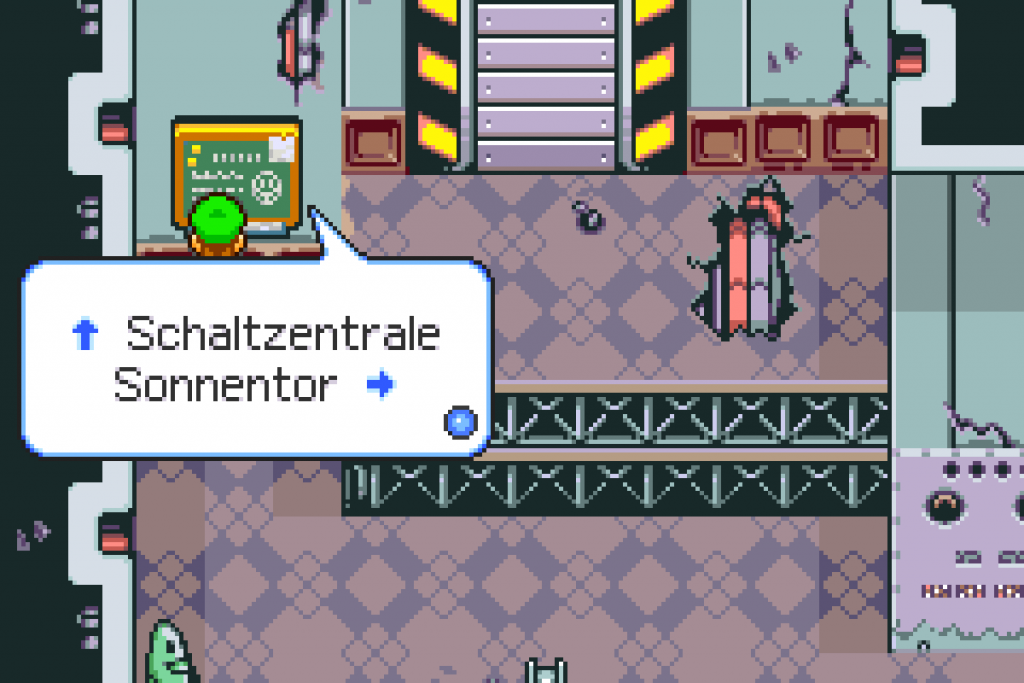 Drinnen werden dir erstmal alle Wissenschaftler entgegen laufen, weil sie vor Ludmilla fliehen. Gehe geradeaus in die große Halle und aktiviere den rechten !-Block, damit sich das Tor öffnet. Folge einfach dem Weg, (dort wo auch immer wieder Ständer mit Spiegeln stehen). Bis du schließlich beim Sonnentor landest. Davor ist ein Schild mit zwei Kombinationen, probiere in der großen Halle die zweite aus. Sprich, schlage gegen die Kegel, damit das blau, rote Muster mit der Tafel überein stimmt. Wenn das geklappt hat, erscheint ein großer Strahl, welches das Tor öffnet.