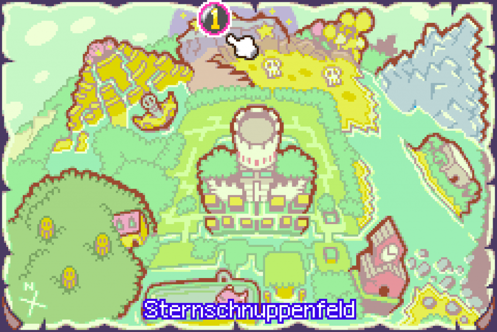 Gehe also nach rechts über die Brücke und hole dir die ersten Münzen aus den Blöcken und kämpfen mit Gegnern. Am Ende gelangst du zum Sternschnuppen-Areal 51, wo dir zwei komische aussehende Toads in einem Sondertraining den hohen Sprung und den Wirbelsprung beibringen. Mit diesen Fähigkeiten musst du nun die Zielfahne erreichen und kannst dann deinen Weg fortsetzen. Kurz darauf triffst du die Brüder erneut, welche dir nun noch die Paar-Aktion im Kampf beibringen. Diese sind besonders bei starken Gegnern hilfreich, da sie deutlich mehr Schaden zufügen. Übe sie unterwegs ein wenig und fülle deine BP immer wieder mit Sirup auf. Hast du am Ende genug Münzen gesammelt, gelangst du auch wieder zu Stella. Übergebe ihr die gewünschte Anzahl und sie fordert dich zum Kampf heraus. Setzt du immer wieder die Paar-Attacken mit wenigen BP ein, also ohne Hilfe, dann solltest du Stella nach nur 10 Runden erledigt haben. Natürlich gilt es dabei, ihren Stachelkörpern auszuweichen, die sie wirft.