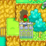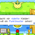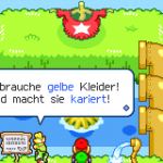 Weiter geht die Reise in den Süden vom Bohnenland. Nimm die Röhre und wähl #4 aus. Folge dem Weg dann nach rechts. Hier ist auch in unmittelbarer Nähe der Flughafen. Schieb die Buu Huu-Statue zur Seite und folg dem Weg. Speicher ab und du musst als nächsten Kleidung färben. Du erhältst eine kurze Erklärung, wie du Farben und Muster auf das T-Shirt bekommst. Dabei ist etwas Geschicklichkeit und Farbkenntnis gefragt. So bekommst du Mischfarben, dazu musst du die Bob-ombs gleichzeitig treffen.