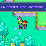 Die letzte Bohne findest du im Bohnenland Ost (6). Gehe am Strand etwas nach oben. Dort findest du einen !-Block, aktiviere diesen, damit eine Plattform erscheint. Wirbel dich auf diese und folge dann rechts den Weg weiter. Den Koopa kannst du nun umrennen. Kriech durch den Zaun, speichere das Spiel und Luigi beobachtet wie die Obstbohne gefressen wird. Es folgt der Kampf gegen Pir.-Beanie.