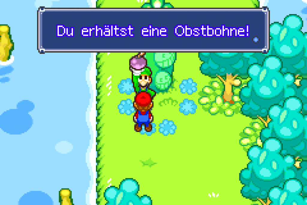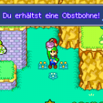 Nutz also zunächst die Reise-Röhre und geh zu #2 Bohnenland-Nord, einen Abschnitt weiter rechts findest du ein Schild, welches auf das Yoshi-Theater verweist. Ramme den Koopa mit deiner Feuer-Fähigkeit um und du erfährst über die Geheimnisse der Neoneier. Anschließend werden auf der Karte 7 Standorte markiert, wo du die Obstbohnen finden kannst. Sechs kannst du in einem Blumkreis finden, für die letzte musst du vorher einen Gegner besiegen. In unserer Lösung laufen wir dabei gegen den Uhrzeigersinn. Wir verzichten auf eine größere Beschreibung, schau am besten auf die Karte wo die Bohnen markiert sind und hau Luigi in den Boden, um die Bohnen zu bergen.
