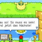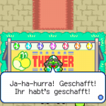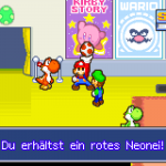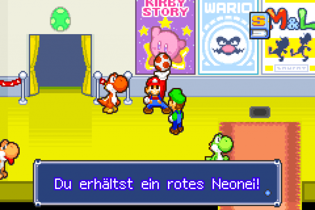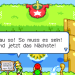 Der Kampf ist für dich jedoch relativ einfach. Nutz die Fähigkeit deiner Hand, um hier ordentlich Schaden anzurichten. Dein Vorteil ist, dass die Elektroangriff besonders effektiv gegen Piranha-Beanie sind. Nach 5 Runden sollte er besiegt sein. Anschließend erhältst du die letzte Obstbohne. Kehre zum Theater zurück. Sprich mit jedem Yoshi um ein Neonei zu erhalten und tausche diese beim Direktor gegen die Sternbohne ein.
