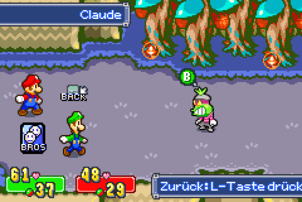 Damit kannst du nun außerhalb der Arena einen weiteren Weg öffnen und findest Claude, welcher dich zum Kampf herausfordert. Nutz hier am besten die Paar-Attacken, je nach Kombi solltest du ihm zwischen 40-50 KP entziehen. Nach 6 Runden ist er damit besiegt. Pass bei seinen Angriffen auf, keinen Gift-Pilz oder Bombe zu erwischen. Nach dem Kampf gehört dir die letzte Sternbohne.