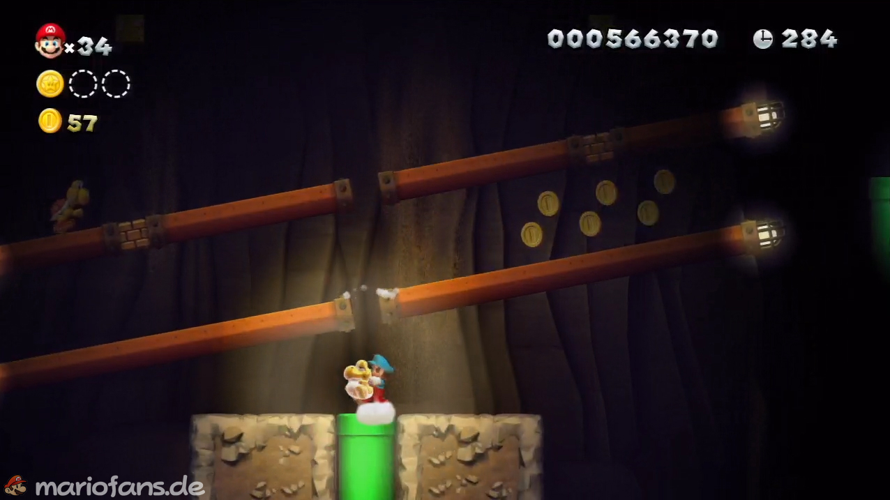 Nicht zu übersehen. Spring auf die untere Plattform um die Sternenmünze zu erreichen. - Sternenmünze 2