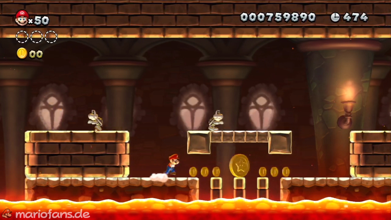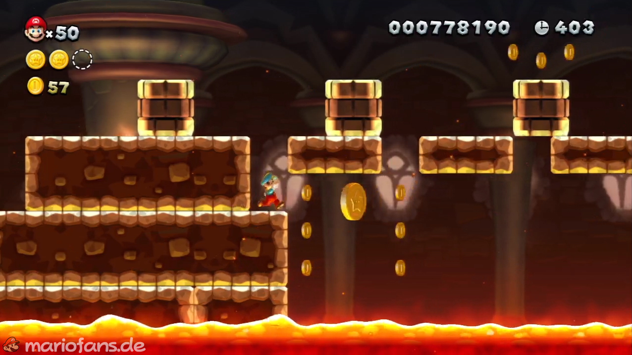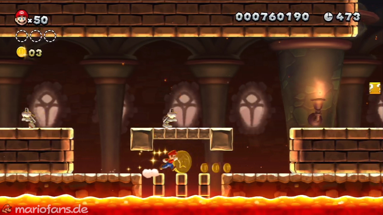 Nicht zu übersehen. Laufe schnell von Plattform zu Plattform um die Sternenmünze einzusammeln ohne in die Lava zu fallen. - Sternenmünze 2