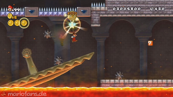 Die letzte Münze befindet sich kurz vor dem Ziel. Um sie zu erreichen musst du vorher Kugelwillis im Schlepptau haben. Spring auf die erste Plattform und danach auf den Kugelwilli, welcher etwas höher fliegt. Danach kannst du mit einem Wandsprung, die Münze erreichen. Viel einfacher ist das ganze Spiel mit einem Propeller-Anzug. - Extra