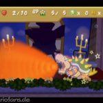 Um es vorweg zu nehmen, du wirst diesen Kampf verlieren. Da Bowser den Sternenstab gestohlen hat, ist er für dich zu diesem Zeitpunkt unbezwingbar. Hast du den Kampf verloren, landest du in einer Lichtung von Gumbafurt und damit beginnt der Prolog von Paper Mario!