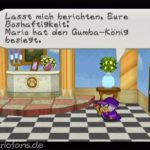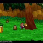 Ist diese ganze Sequenz vorbei, solltest du dich zunächst im Toad-Haus ausruhen und dein Spielstand einmal speichern. Neben dem Speicherblock kannst du vom Baum noch eine Gum-Nuss schlagen, diese ist später einmal wichtig. Zerstöre nun den Block und verlasse das Dorf.