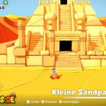 Wenn die Sonne zurück ist, findest du hinter dem Tempel einen kleinen Fleck im Sand. Buddel hier nach dem Schatz.