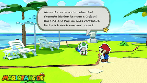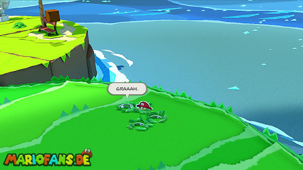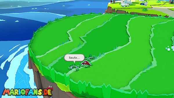 Einige Toads sitzen gut sichtbar auf der Insel, während andere sich zwischen den Steinen oder hinter Objekten versteckt haben. Habt ihr alle gefunden, erscheint auch hier eine Toad-Statue.