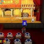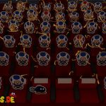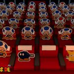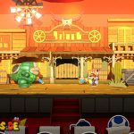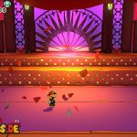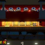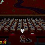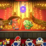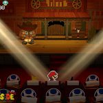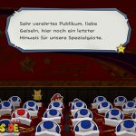 Setzt euch danach auf euren Platz im Theater und genießt die Show, an der ihr sogleich teilnehmen müsst. In der ersten Runde gilt es, die Waffe genau dann abzufeuern, wenn „Feuer!“ auf dem Bildschirm erscheint. Im nächsten Stockwerk müsst ihr die Pappmacho-Koopas besiegen. Das gelingt euch am schnellsten, wenn ihr auf die Panzer springt und einen Schlag mit dem Hammer folgen lasst. Als Nächstes müsst ihr den tanzenden Pappmacho-Shy Guys ausweichen und sie ebenfalls mit dem Hammer bekämpfen.