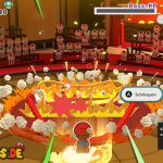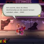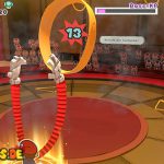Ihr solltet den Boss nicht mit normalen Angriffen attackieren. Der Boss ruft die verlorenen Gummibänder nämlich zu sich und regeneriert seine KP wieder. Euer Ziel ist es hingegen, den „EIN“-Schalter zu aktivieren und die Faltarme einzusetzen. Bei dem Spezialangriff fliegen die Gummibänder aus der Arena, sodass sich der Boss nicht regenerieren kann. Versucht, die Faltarme ganz nah am Boss einzusetzen. Je näher ihr seid, desto mehr Schaden richtet ihr an. Der Boss selbst feuert eine Gummiband-Salve auf euch. Ihr müsst die Gummibänder blocken, denn sonst werdet ihr gefesselt und seid bewegungsunfähig. Anschließend wird der Boss nach euch greifen. Springt dann rechtzeitig, um dem Angriff zu entgehen.