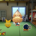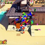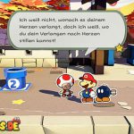 Befreit den Toad aus dem nördlichen Mülleimer und ihr erfahrt, dass der Shogunland-Schlüssel leider verschwunden ist. Zieht außerdem den Toad aus dem Maul der Gumba-Maske rechts und nehmt die Maske mit – ihr benötigt sie später. Die Weltallkriegerinnenmaske sowie die König-des-Urwalds-Maske könnt ihr ebenfalls einpacken.