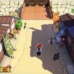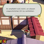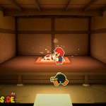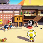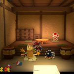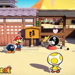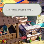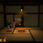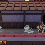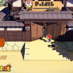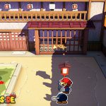 Im ersten Haus auf der linken Seite gibt es bereits eine Promi-Schatztruhe mit einem Schatz-Mini #40 darin. Wenn ihr der Hauptstraße nach Norden folgt, werdet ihr von einem Gumba in eine Seitengasse gerufen. Euch wird berichtet, dass das Shogunland von Origami-Schergen überrannt wurde – eure Hilfe wird benötigt. Am Ende der Hauptstraße steht das Shogun-Theater. Ihr könnt das verschlossene Eingangstor allerdings nicht öffnen, da euch der passende Schlüssel fehlt. Wo könnte der Schlüssel nur sein?