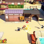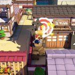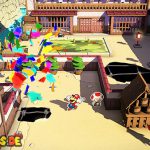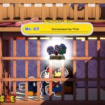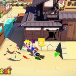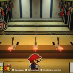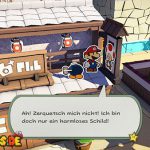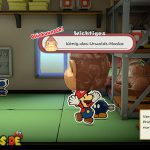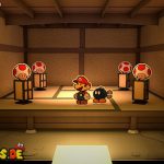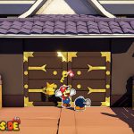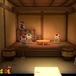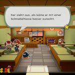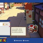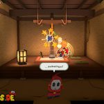 Mit dem Shogunland-Schlüssel in der Tasche könnt ihr zuvor verschlossene Türen öffnen. So z. B. auch die Tür im Laden beim Eingang des Parks. Im oberen Stockwerk versteckt sich dort ein Toad hinter der Tür. Das ist der Ladenbesitzer, von dem ihr dann u. a. einen Schatz-Mini kaufen könnt. Geht schließlich zum Shogun-Theater, dessen Eingang von Pappmacho-Gegnern bewacht wird. Um euch vorbeizuschleichen, müsst ihr die Gumba-Maske aus dem Belegschaftsraum aufsetzen.
