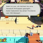 Danach springt ihr auf den Karren und von dort aus springt ihr links auf das Dach. Folgt den Dächern nach Süden zum Glockenturm und klettert erst mal nach oben zur Glocke. Wenn ihr die Glocke mit dem Hammer läutet, wacht der Pappmacho-Koopa auf und macht den Eingang zum Haus der Mysterien frei. Der verlinkte Guide erklärt euch, wie ihr das Geheimnis des Hauses lüftet. Wenn ihr insgesamt 100-mal gegen die Glocke schlagt, fällt zudem ein Schatz-Mini heraus. Rettet danach den Toad im Erdgeschoss des Glockenturms, der euch erzählt, dass der Belegschaftsraum im Osten des Parks versteckt ist.