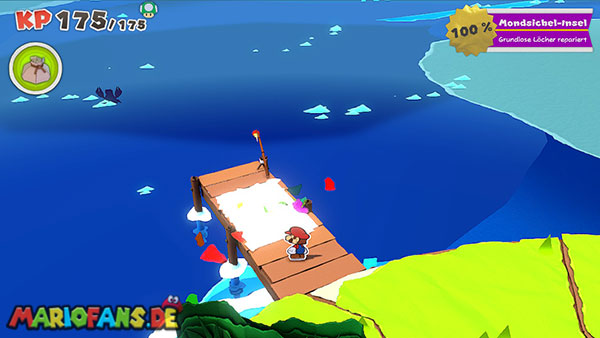 Nach dem Sieg erscheint ein Erd-Faltkreis. Nutzt ihn, um den fehlenden Teil der Insel aus dem Meer zu heben. Dadurch entsteht die vollständige Vollmond-Insel.