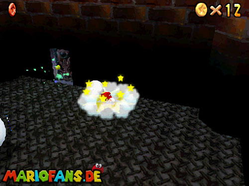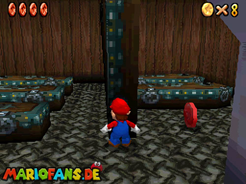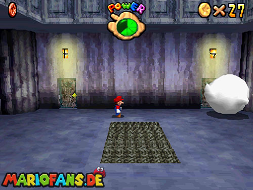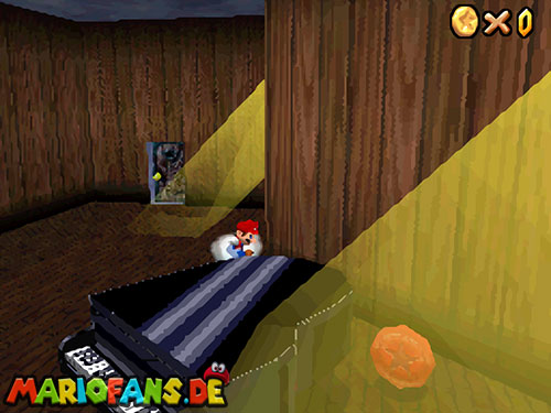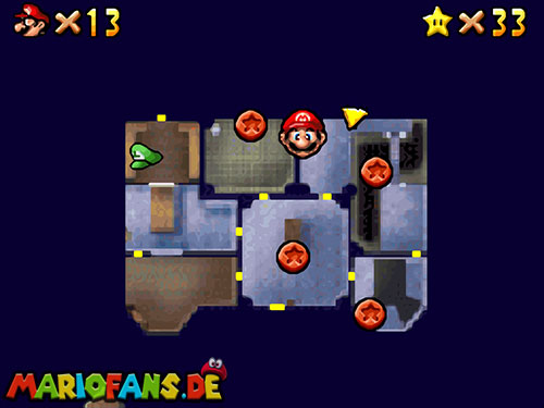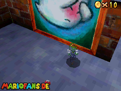 In der rechten hinteren Tür im Erdgeschoss findest du den Bob-omb, welcher die Münzen auf der Karte einzeichnet.