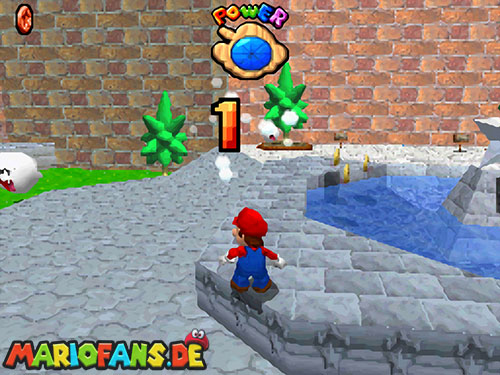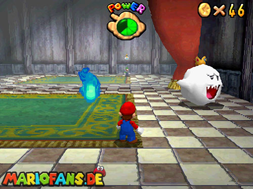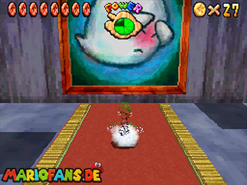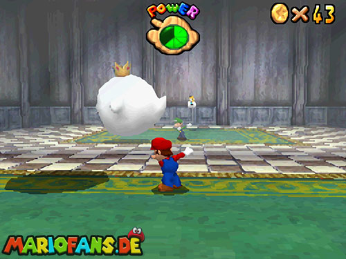 Im Hinterhof des Schlosses, wo sich die Geister befinden, müsst ihr acht Geister besiegen, um damit alle 8 roten Münzen zu finden. Habt ihr es geschafft, winkt der nächste Powerstern.