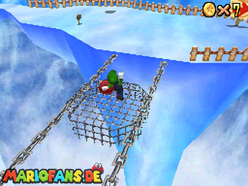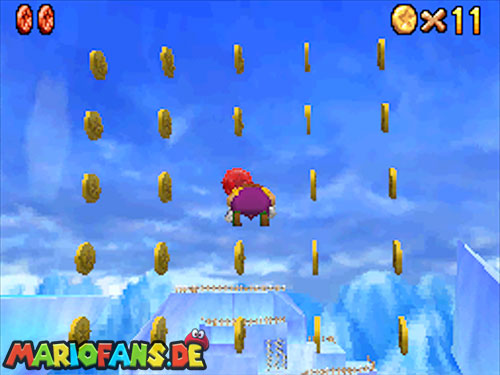 - Auf den bewegenden Eis-Blöcken befindet sich auch eine Münze.