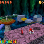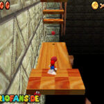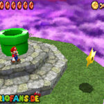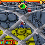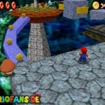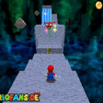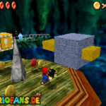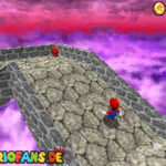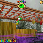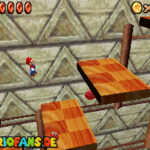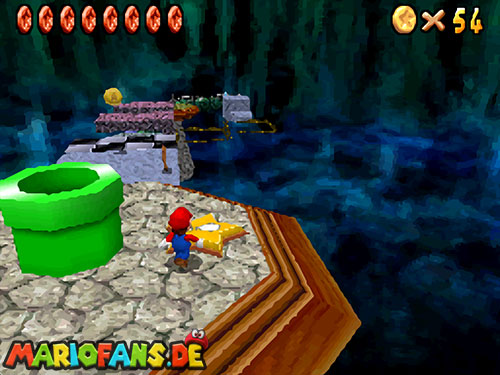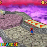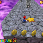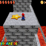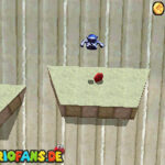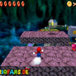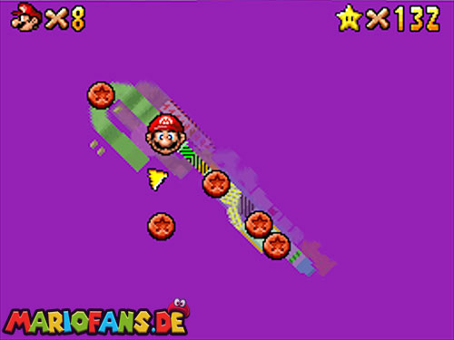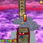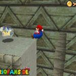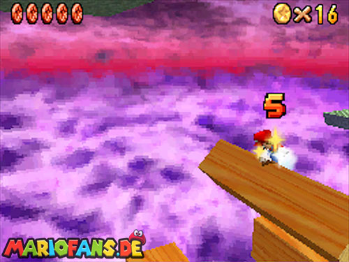 Betritt das Level erneut. Wenn ihr zum Schluss bei der Warpröhre seid, drückt diesen um einen Stern zu aktivieren, der oberhalb der kippenden Plattformen ist. Geht zurück auf die wippenden Plattformen und sorgt dafür, dass die Plattform sich so nach unten neigt, dass man beim hoch rennen via Doppelsprung zur höheren Ebene gelangt und den Stern einsammeln kann.