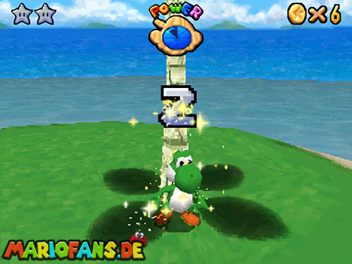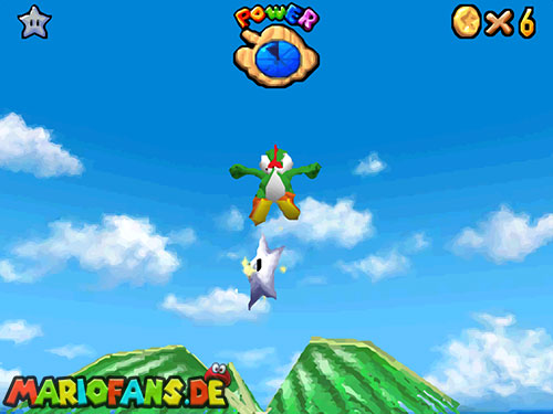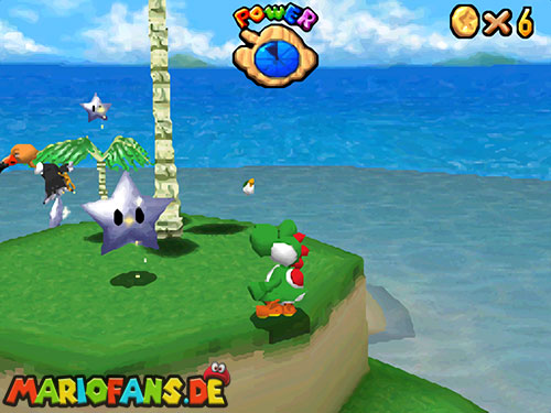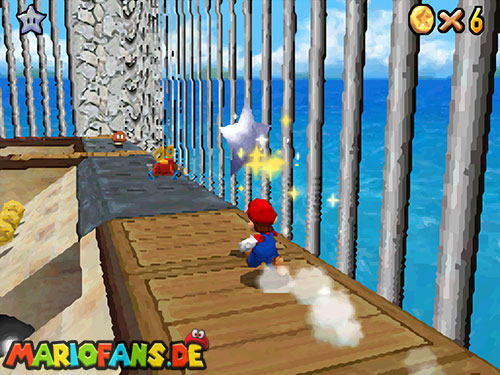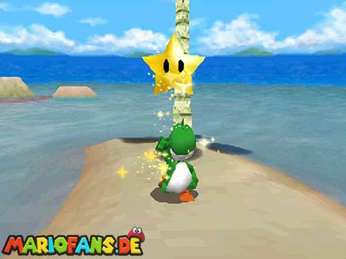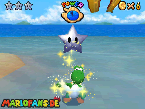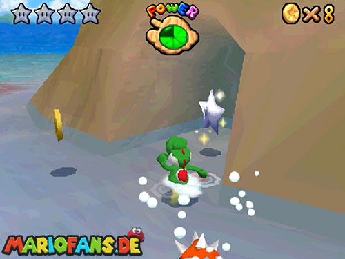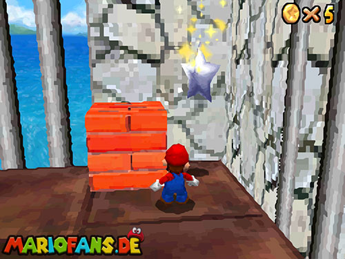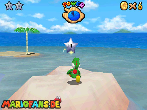 Im Raum, wo sich die Minispiele auswählen lassen, befindet sich ein Bild von einer Urlaubsinsel. Springt hinein und sammelt in diesem Level alle 5 Silbersterne, um diesen Powerstern zu bekommen.