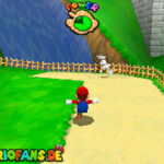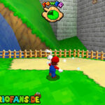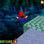 Kehrt erneut in das geheime Level im ausgetrockneten Schlossgraben zurück. Nun schnappt ihr euch die Mario-Kappe und fliegt am Ende des Hügels einfach weiter, bis ihr einen Schalter für einen Stern entdeckt. Betätigt den Schalter und fliegt der Münzspur entlang nach ganz oben, um diesen Stern zu finden.