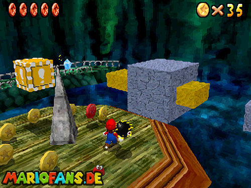 - 7. Als Mario nutzt ihr die rote Box um als Heliumballon auf einen hohen Baumstumpf zu fliegen und diese rote Münze zu erhalten.