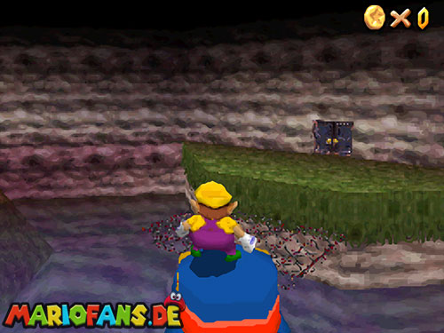 Starte das Level als Wario erneut. Gehe als Wario kurz hinter dem langen Hügel um die rote Box zu nutzen, Dann kannst du als Metal Wario über einen schmalen Pfad wandern. Hier weht ein heftiger Wind, den nur Metal-Wario unbeschadet überstehen kann. Lauft weiter zur schwarzen Box und zerstört diese, um den nächsten Powerstern zu erhalten.