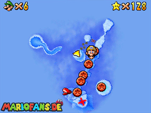 - Mit dem Helium Mario müsst ihr auf eine schwebende Plattform fliegen, schaut dazu auf die Karte.