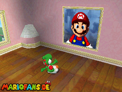 Im Foyer des Schlosses musst du die Treppen nach oben laufen und rechts durch die Tür gehen. Folge den Wegen immer weiter, bist du rechts eine weitere Tür mit einer acht findest. Dahinter kannst du das Gemälde von Mario entdecken.