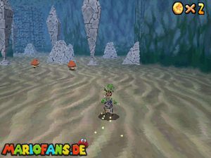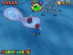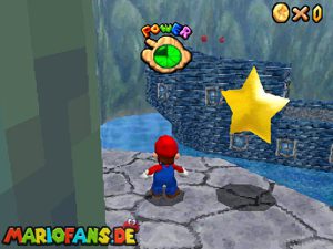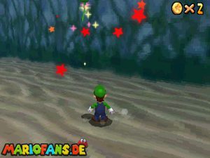 Auf dem Grund des Sees, kannst du eine Luigi-Mütze finden. Mit dieser schwimmst du in die Höhle. Hol dir dort aus der Kiste die Blume, um durch Wände laufen zu können. Auf der rechten Seite siehst du auf dem Boden einen Schalter. Aktiviere diesen, damit hinter dem Zaun der Stern erscheint. Lauf schnell durch das Gitter, um ihn zu erhalten.