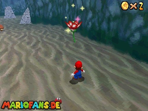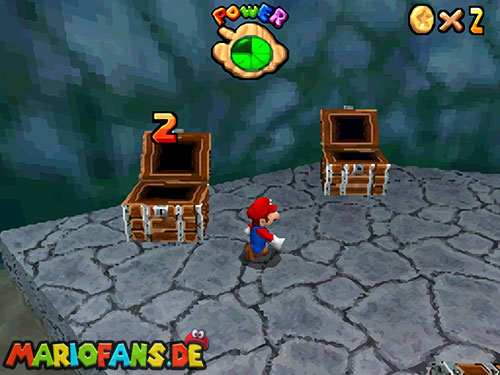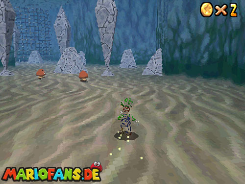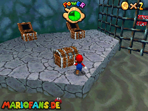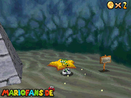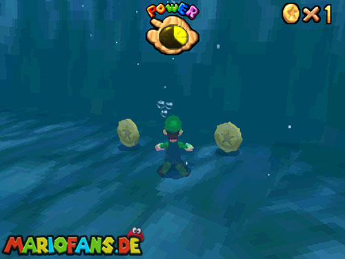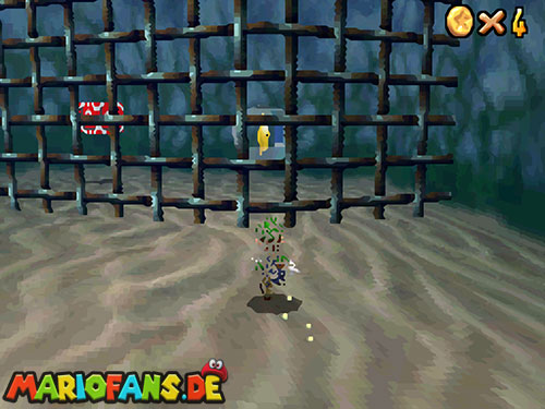 Auf dem Grund des Sees, kannst du eine Luigi-Mütze finden. Mit dieser schwimmst du in die Höhle. Hol dir dort aus der Kiste die Blume, um durch Wände laufen zu können. Auf der rechten Seite siehst du auf dem Boden einen Schalter. Aktiviere diesen, damit hinter dem Zaun der Stern erscheint. Lauf schnell durch das Gitter, um ihn zu erhalten.