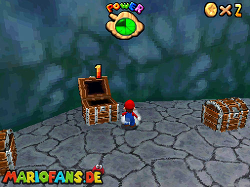 Und wieder ins kühle nass. Taucht wieder bis zur Stelle wo das Schiff war, vorsicht, Kano schwimmt jetzt ein wenig auf dem Grund herum und ist hungrig. Sucht in der Tiefe eine kleine Höhle, die Schatzhöhle, wenn ihr durch den Münzenring schwimmt, könnt ihr noch ein extra Leben ergattern. Am Ende der Höhle findet ihr vier Schatztruhen. Öffnet zunächst die hintere, dann die linke, als drittes die rechte um zum Schluss die vordere Truhe. Ist die vierte Truhe geöffnet, gehört euch der Stern.