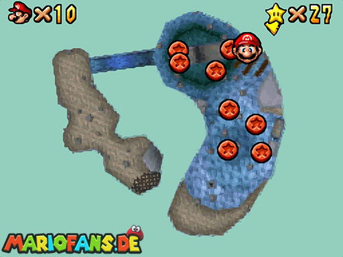 Vor dem Schiffswrack kannst du einen Bob-omb finden, welcher dir auf der Karte die roten Münzen einzeichnet. Auf dem Schiff selbst, findest du drei rote Münzen.