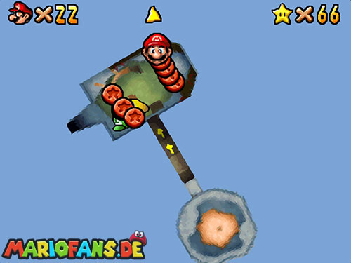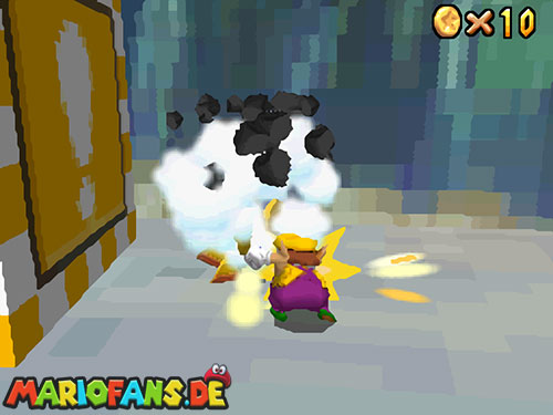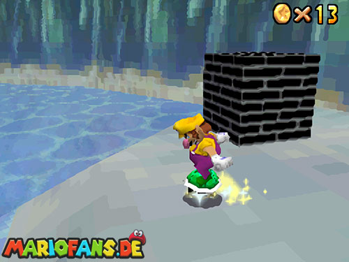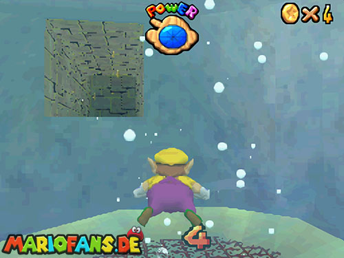 Sobald ihr wieder im Wasser seid, schwimmt ihr zur Stelle wo Bowsers U-Boot war. Am Grund kannst du die Mütze von Wario finden. Schwimmt an Land und holt aus der roten Kiste eine Blume um als Metall-Wario auf den Grund zu sinken. Stell dich genau in die Mitte, damit du fünf Mal in der Mitte eines Ringes stehst. Danach erscheint der Powerstern.